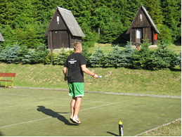 Když jsme byli všichni najezení, vydali jsme se na zpáteční cestu. Tu jsme, stejně jako i ráno, absolvovali autobusem. Po příjezdu do kempu zpět jsme začali opět hrát různé hry. V ten den jsem si oblíbil badminton, tak jsme ho s paní učitelkou Hasalovou cvičili. Samozřejmě že jsme byli na úrovni začátečníků, a tak nám zabíralo více času sbírání míčku než samotné hraní. Ostatní si zahráli fotbal, tenis, volejbal nebo prostě seděli a konverzovali, či se dívali na nás.