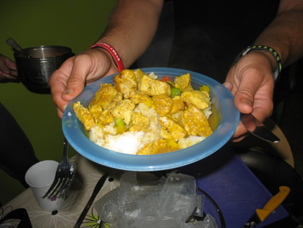 Už se opět schylovalo k večeru. Dnešní večeři měli na starosti deváťáci. Na menu měla být zprvu čína, poté jsme to ale raději kvůli nevhodným surovinám přejmenovali na rizoto. I to rizoto byla hezká představa. Nakonec díky převařené rýži a přehnanému množství koření v mase z tohoto jídla vznikla jakási rýžová kaše s podivně chutnajícím masem. To ovšem nikomu nevadilo, všichni měli totiž hlad. „Když máš hlad, sníš všechno!“ René si zahrál na kuchaře v kasárnách a začal rozdělovat příděly rýže.